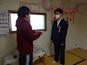 寄宿舎では、災害時に冷静かつ安全に避難できるように、日ごろから訓練を重ねています。火災、地震、土砂災害、不審者対応などを想定した訓練です。今回は、震度5強の地震を想定した避難訓練を実施しました。